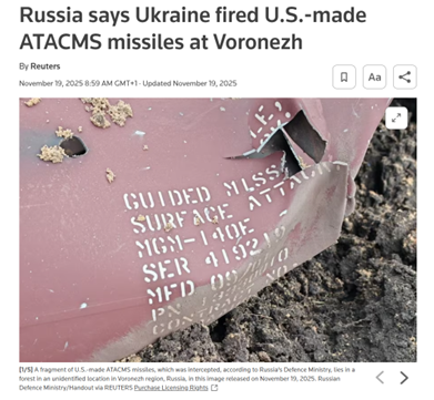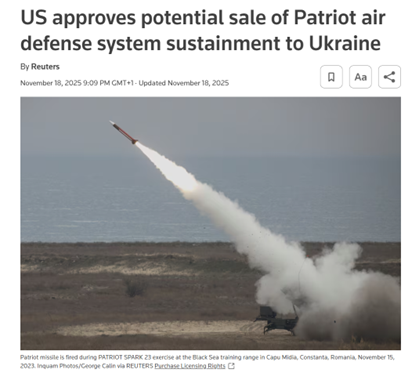 Nur einen Tag vor der Veröffentlichung des 28-Punkte-„Friedensplans“ genehmigte das US-Außenministerium den möglichen Verkauf von Patriot-Luftabwehrsystemen an die Ukraine für 105 Millionen Dollar. Die NATO-Partner überschlugen sich außerdem parallel, die Ukraine militärisch weiter auszustatten. Und während Axios den Plan veröffentlichte, schoss die Ukraine praktisch zeitgleich ATACMS auf russisches Territorium – was ohne Freigabe des NATO-Oberbefehlshabers nicht möglich gewesen wäre.