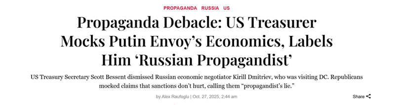 Das Weiße Haus findet das allerdings nicht so prickelnd: Finanzminister Bessent verspottet den Putin-Gesandten öffentlich als „russischen Propagandisten“.