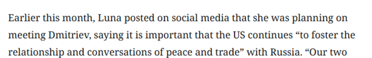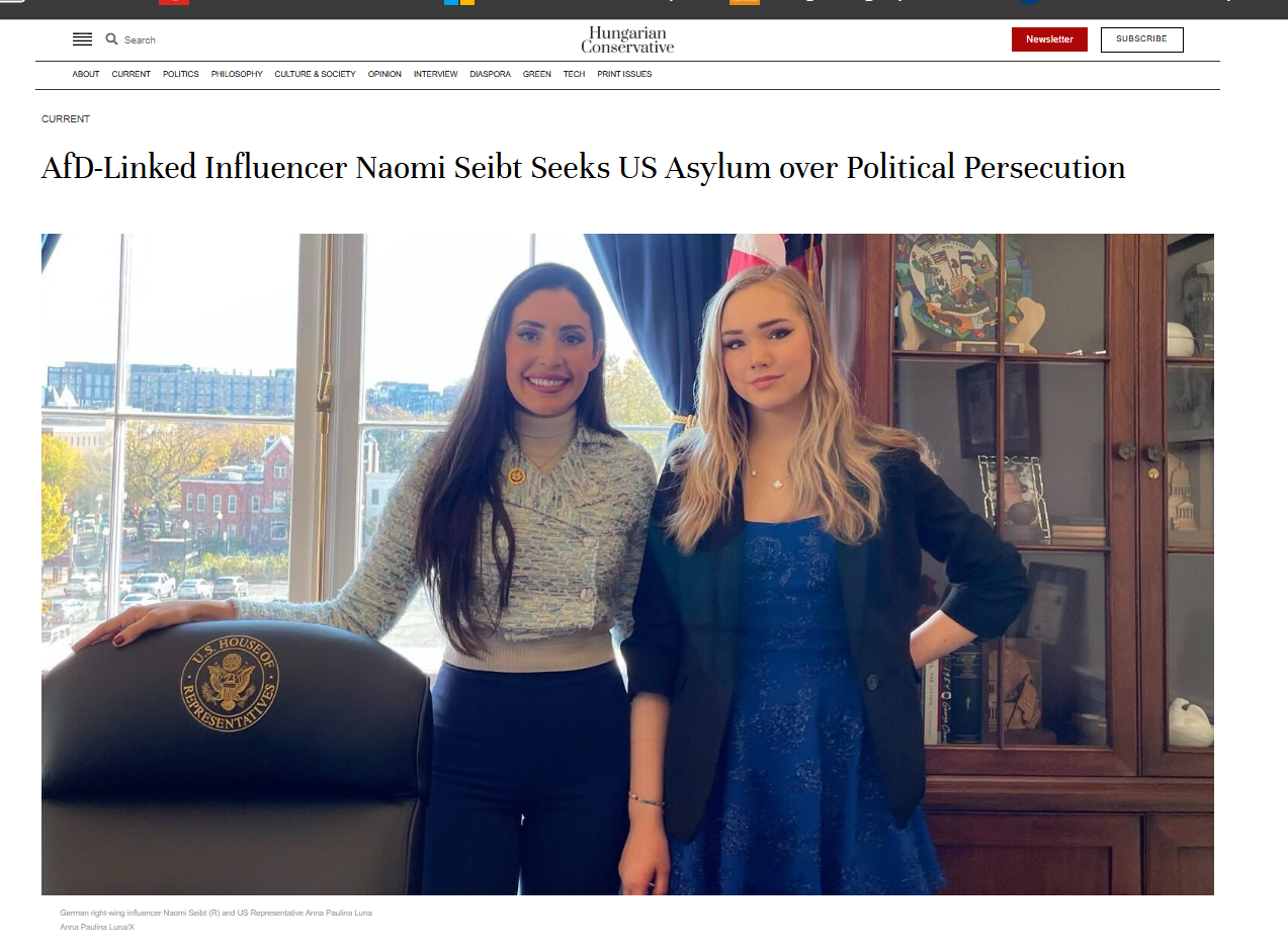 Bei der US-Kongressabgeordneten Anna Paulina Luna handelt es sich genau um jene Politikerin, die laut einem Medienbericht der afD-nahen Influencerin Naomi Seibt bei einem beantragten Asylverfahren in den USA Unterstützung zugesagt hat. Das passt exakt zur AfD-affinen Politik der Donald Trump-Regierung – und zur Haltung der AfD, die bei der Bundestagswahl schon von Russland-nahen Akteuren aus Washington unterstützt wurde.